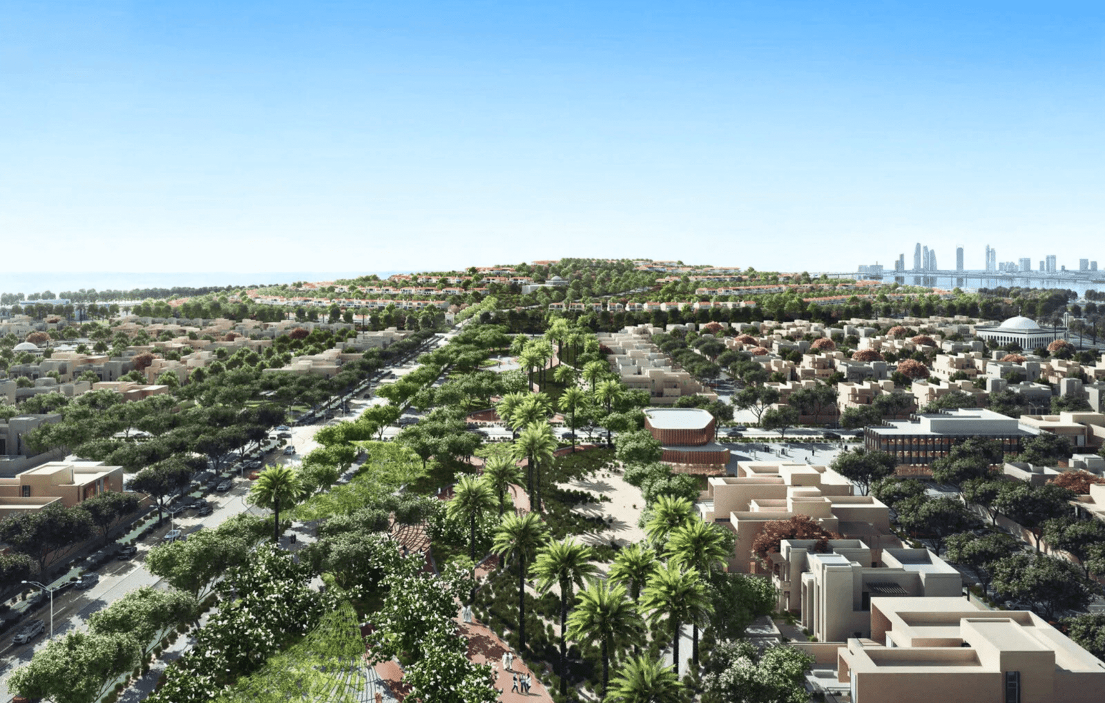 Hudayriyat features a surf pool, velodrome, sports dome, marinas, golf, equestrian clubs, cycling tracks, luxury resorts, and the UAE’s largest elevated park.